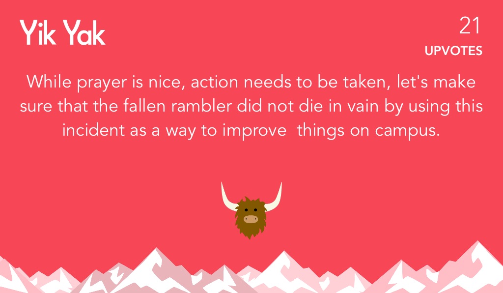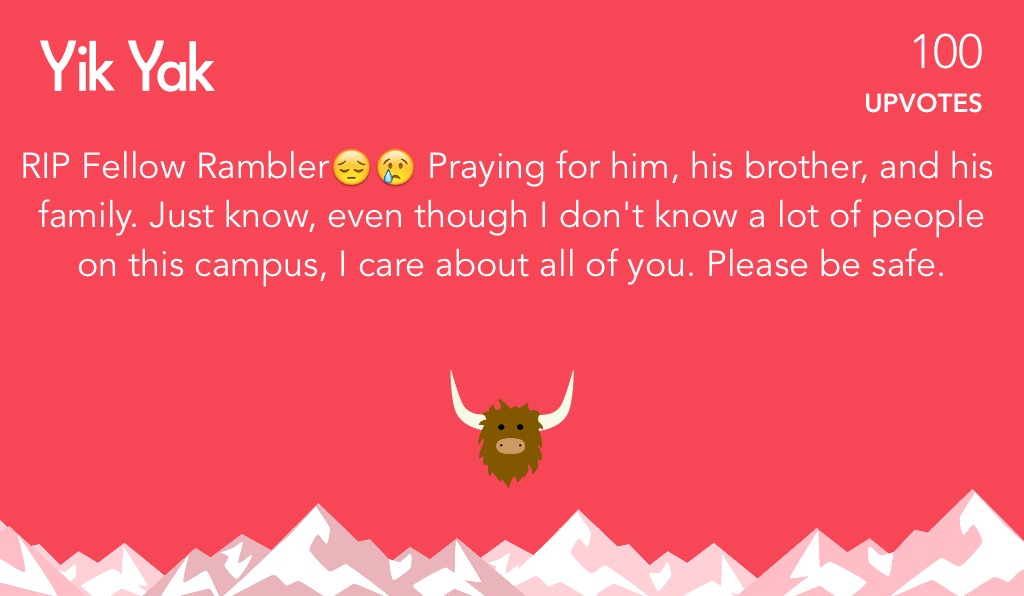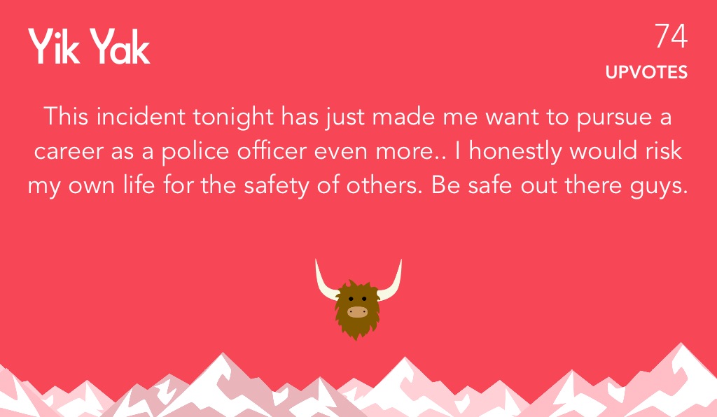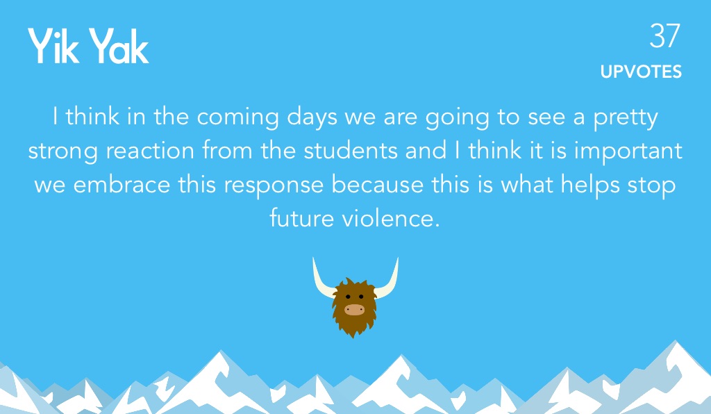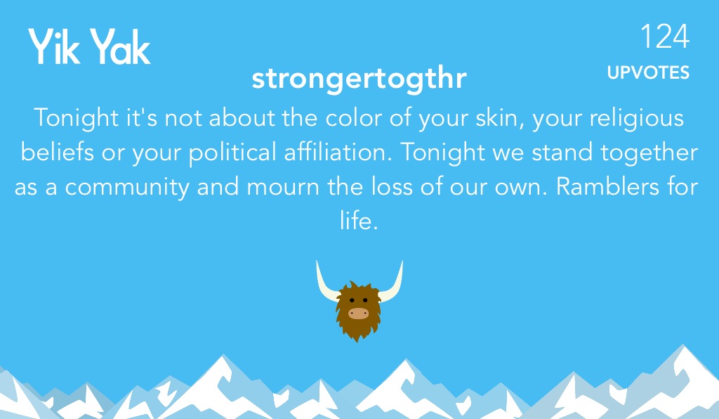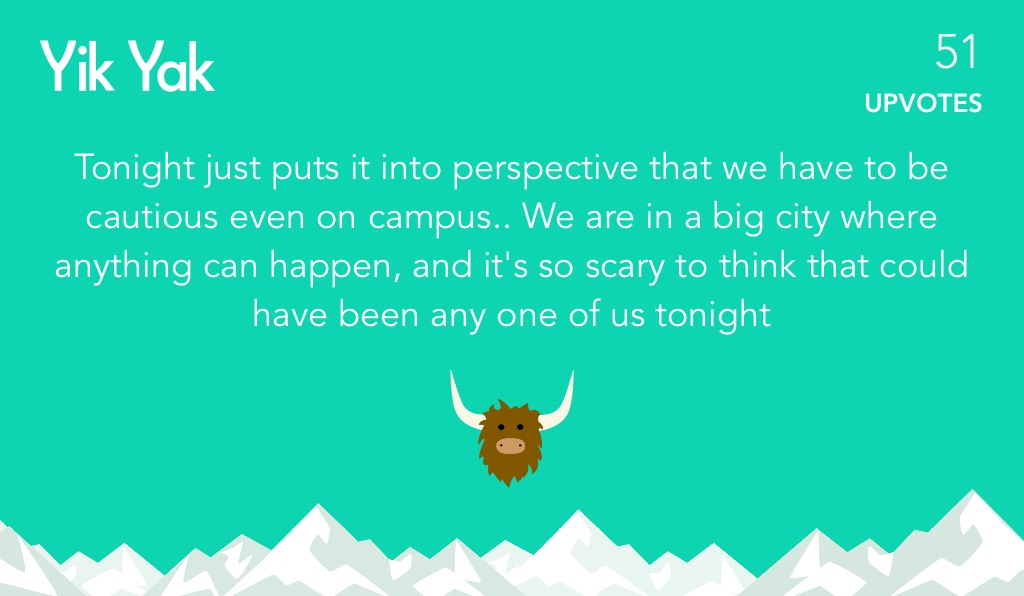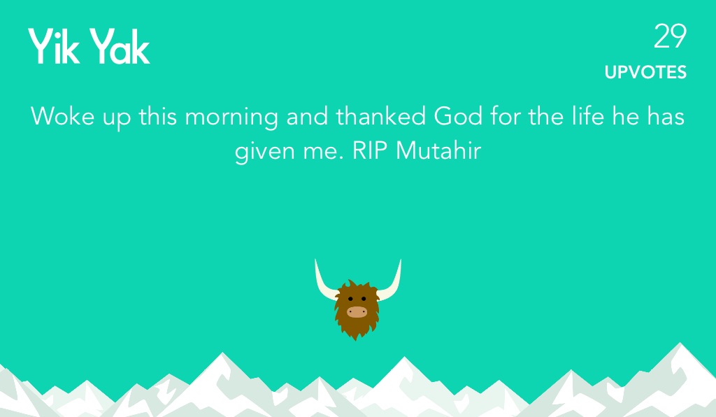 On Friday night 12/04/14 a Loyola student, Mutahir Rauf, was shot in an attempted robbery. This is how the YikYak-community responded in the first 24 hours:
