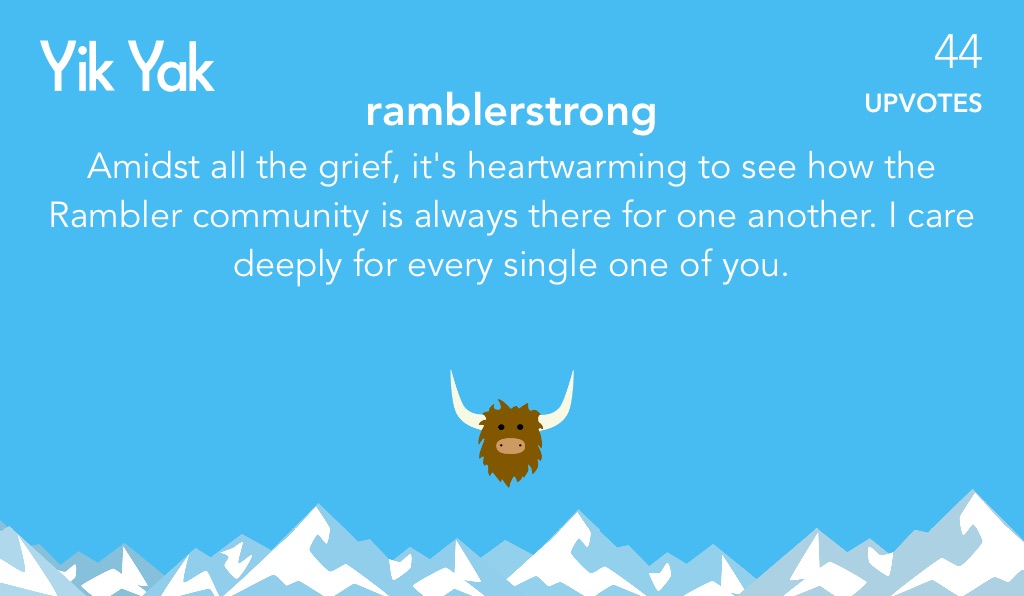 Peeking enables users to look into the Yaks of other areas. While users can look at the community feeds of every college or city, they can only interact with their local community.