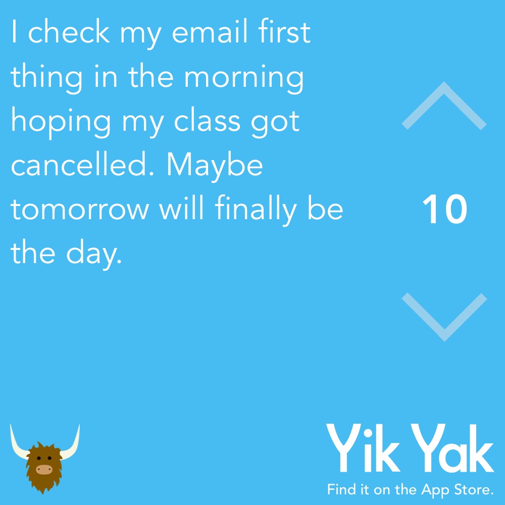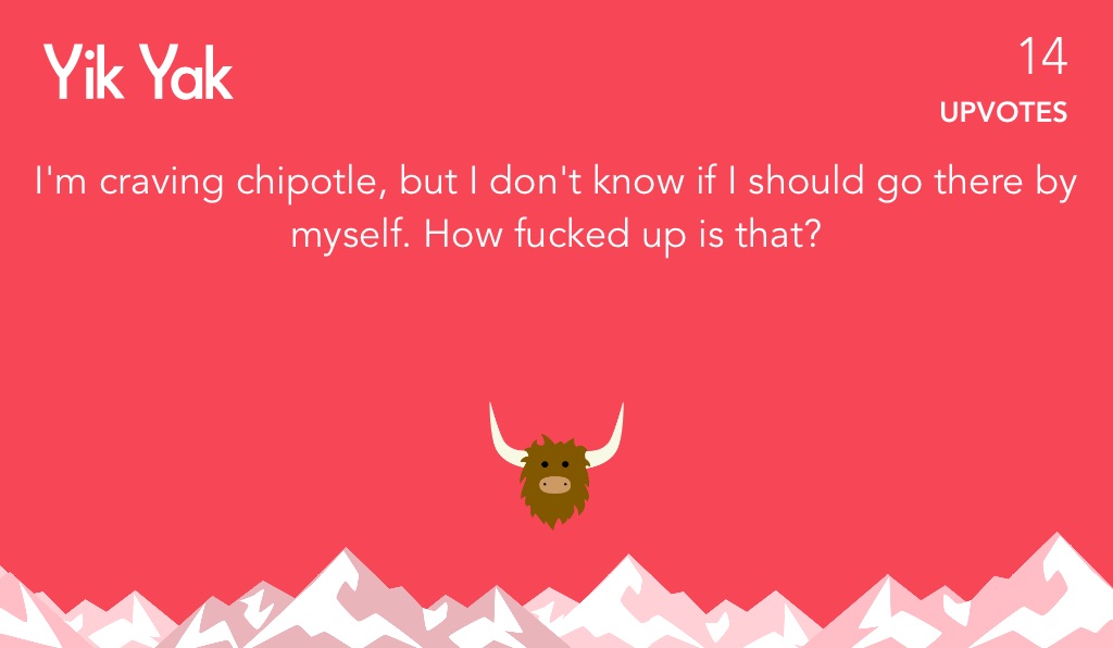 YikYak is a hyperlocal, social, and anonymous bulletin board. It was created in 2013 by two graduates from Furman University and is welcomed on America's college campuses with a growing popularity. Today the company is funded with over $11 Million.