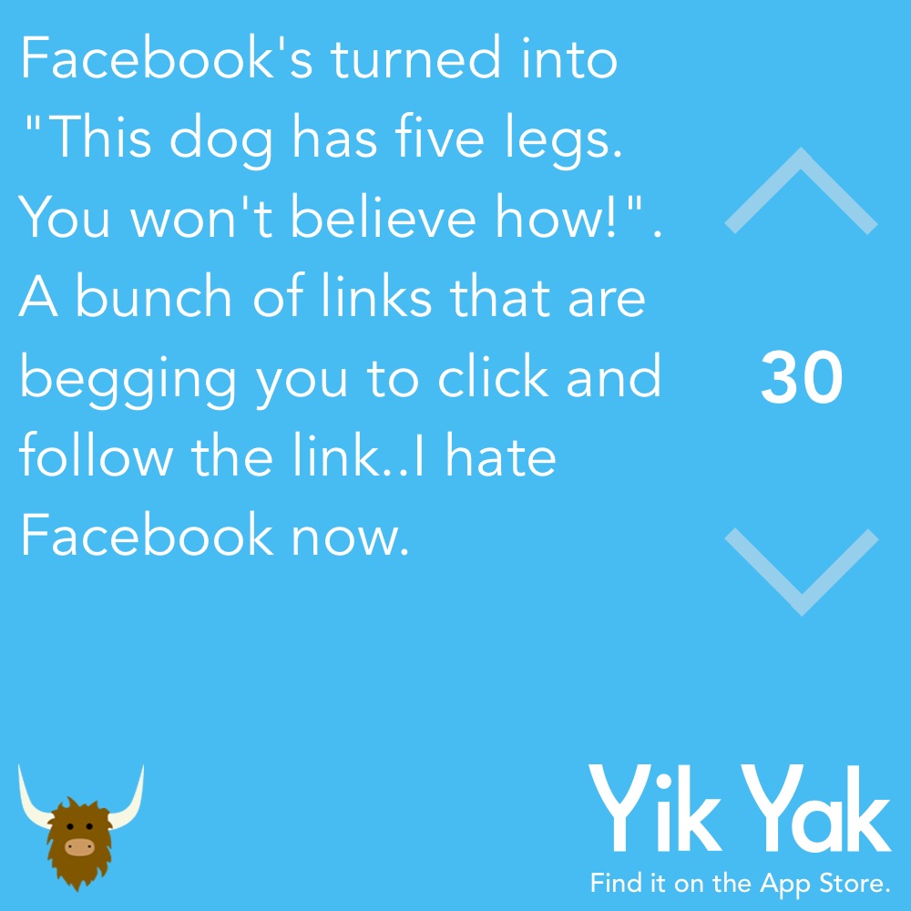 A user can up-vote or down-vote a Yak in his area, a Yak with a high number of up-votes gets featured in the Hot tab. A vote cannot be changed and Yaks with a negative score of 5 are removed from the feed.